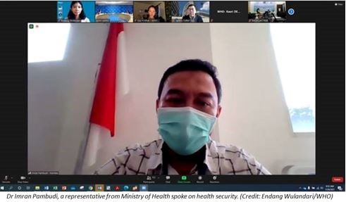 Indonesia shared its experience during COVID-19 pandemic response. The implementation of the recommendations of the Intra-Action Review has led to the development and implementation of Health Alert Cards (e-HAC), strengthening use of the information system and data sharing mechanism among Points of Entry and Provincial Health Officers and the improvement of multisectoral coordination.